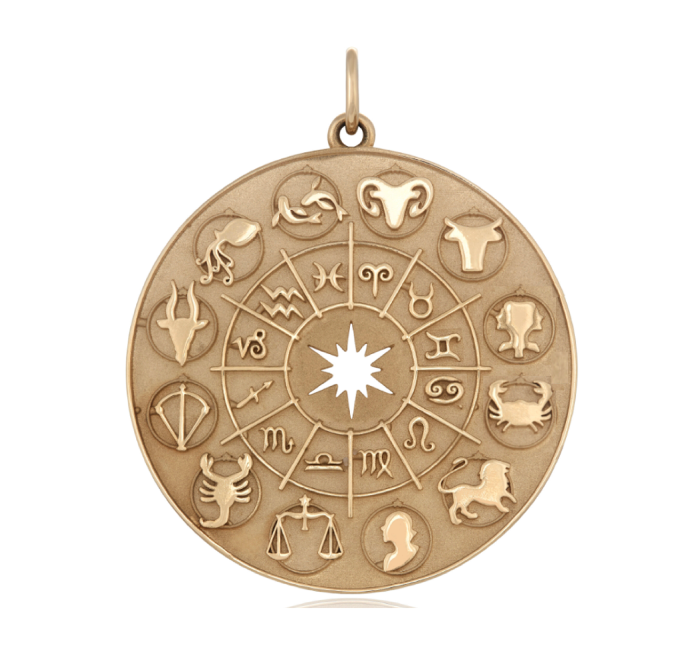 Zodiac Wheel in 14K Gold with Diamond Starburst