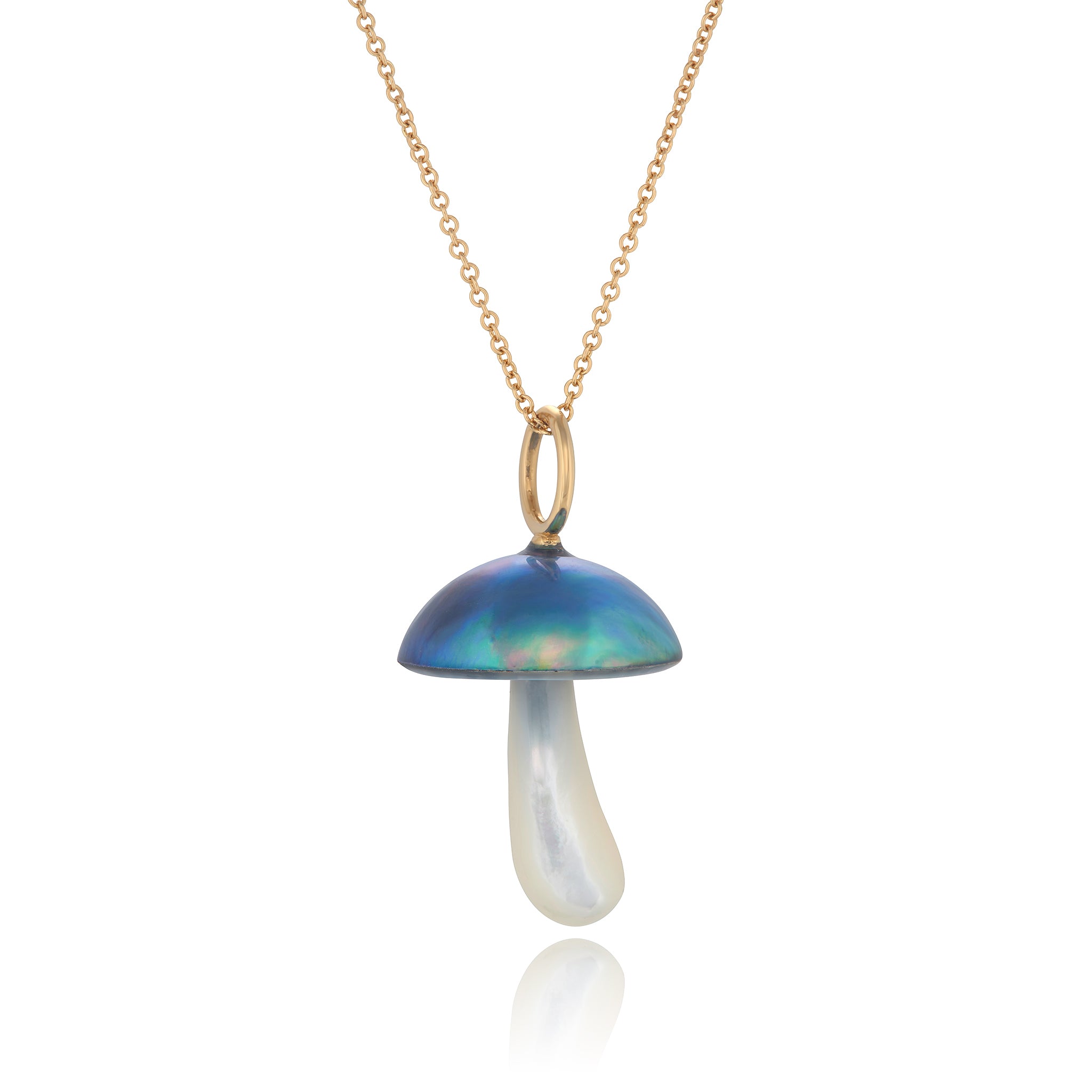Blue Mabe Pearl Mushroom with Gold Butterfly