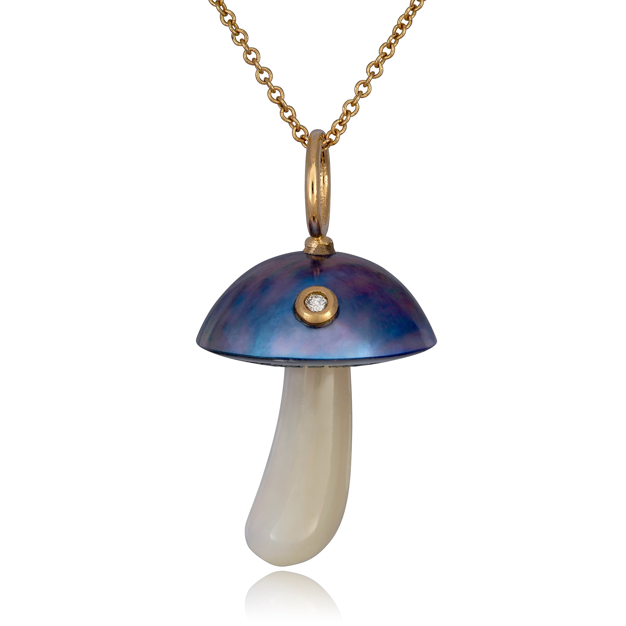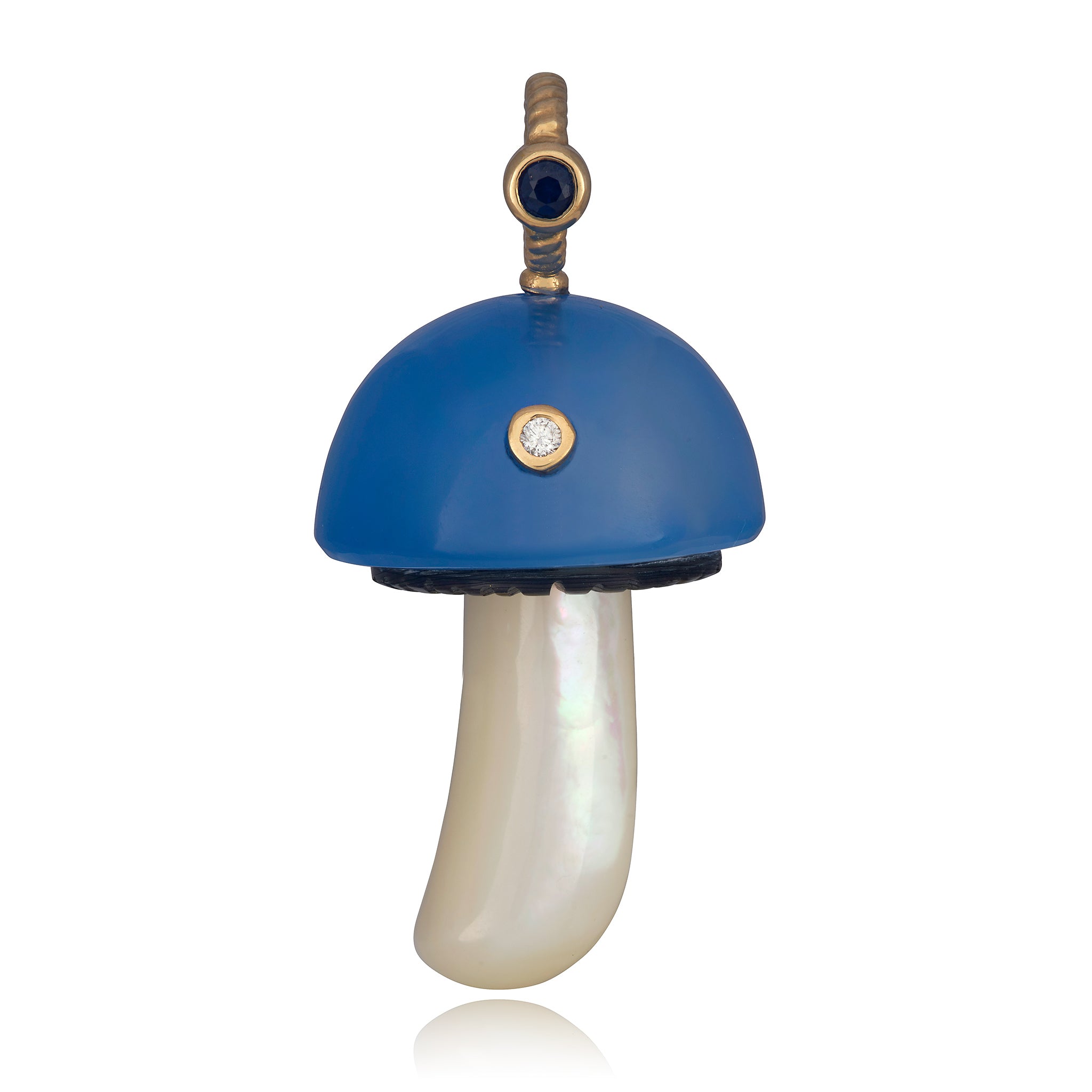 Blue Chalcedony Mushroom with Sapphire and Diamond