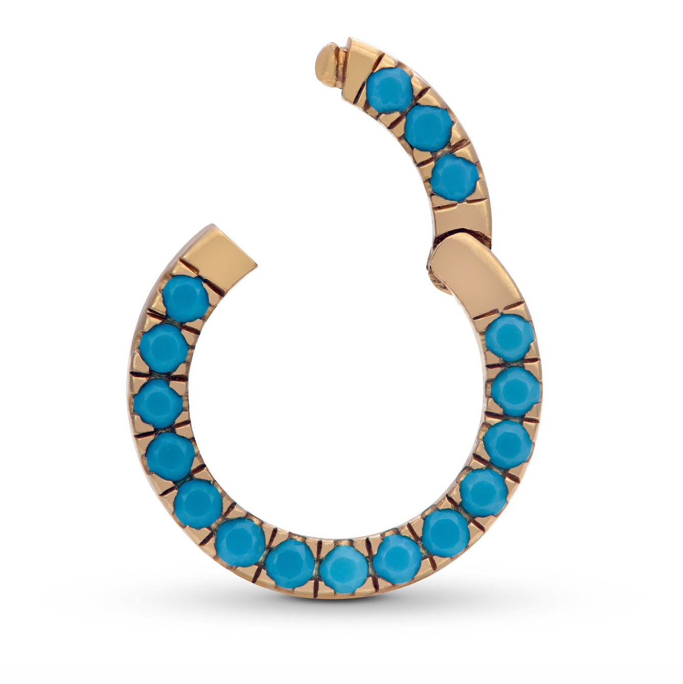 Turquoise Circle Charm Holder in 14K Gold 12mm