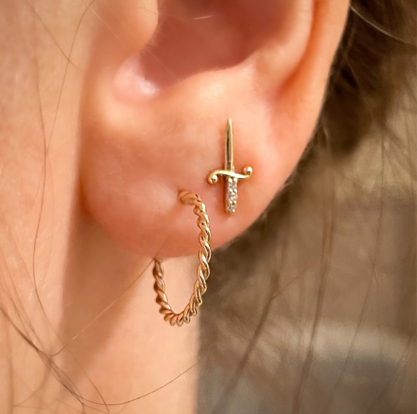 Dagger Studs in 14K Gold with Diamond