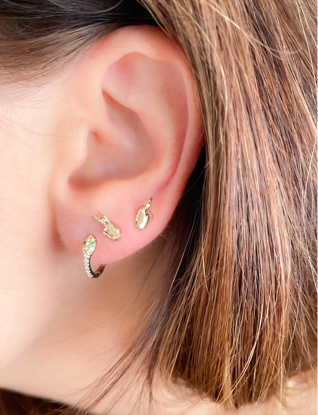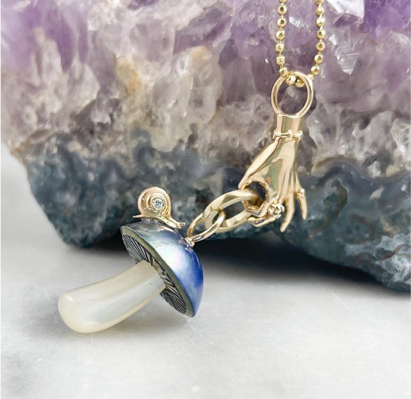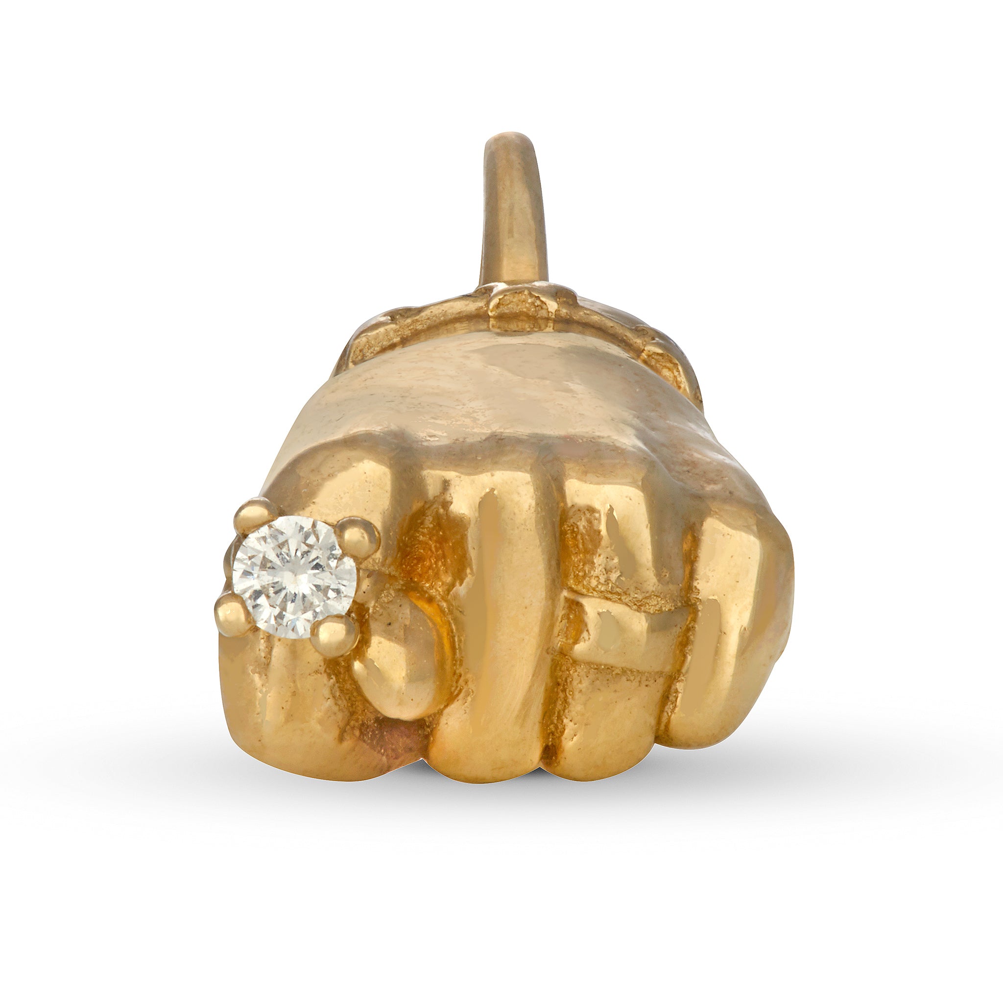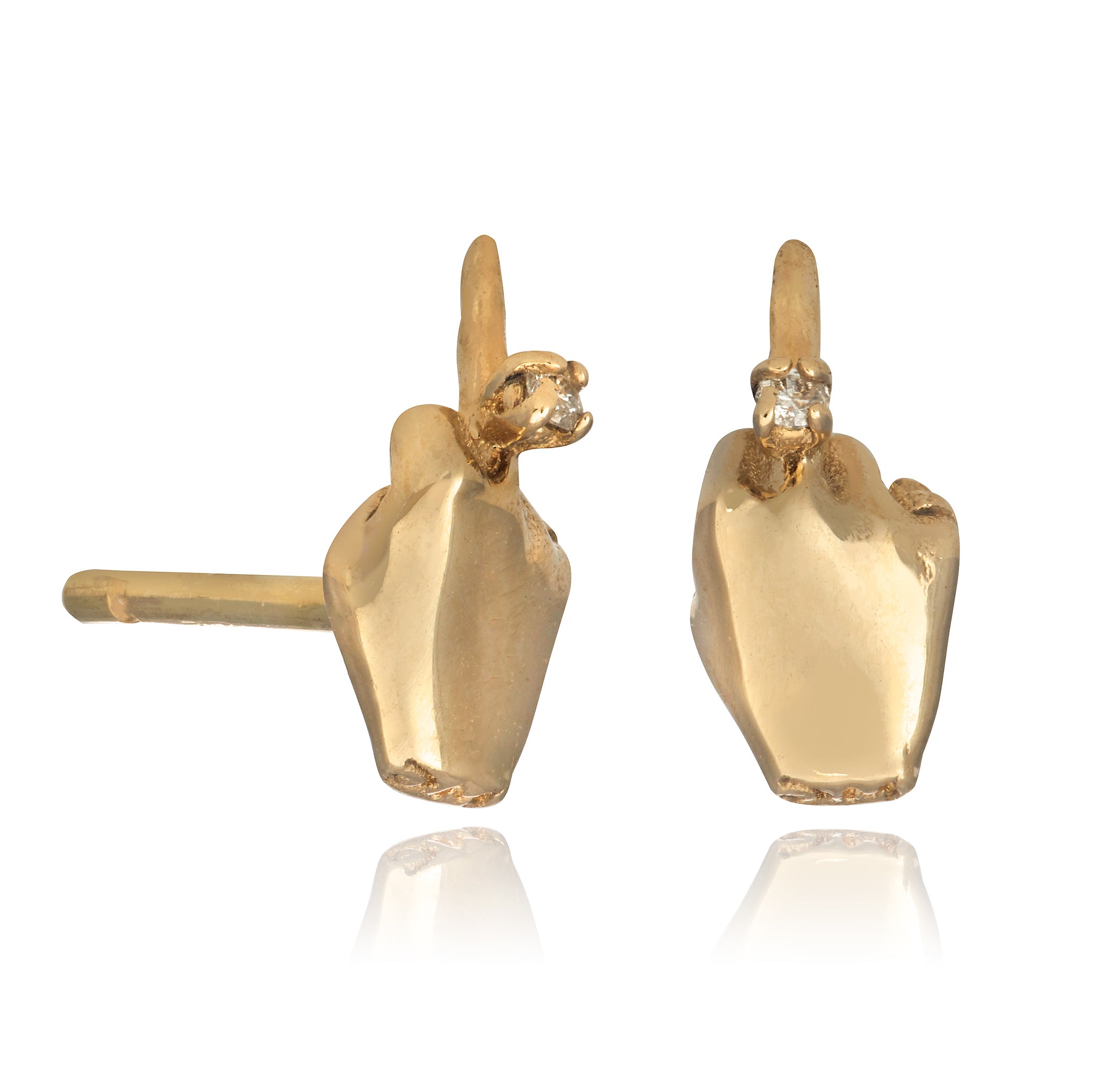 Hand-crafted from gold and silver in the spirit of Victorian figural hand jewelry, Maura’s LadyFinger Collection honors the communicative power of the female hand. Bold gestures drawn from a range of ancient and modern symbols speak wordlessly of peace, protection, romance, and resistance. No more need to ‘watch your tongue.’ Let your hand do the talking.
