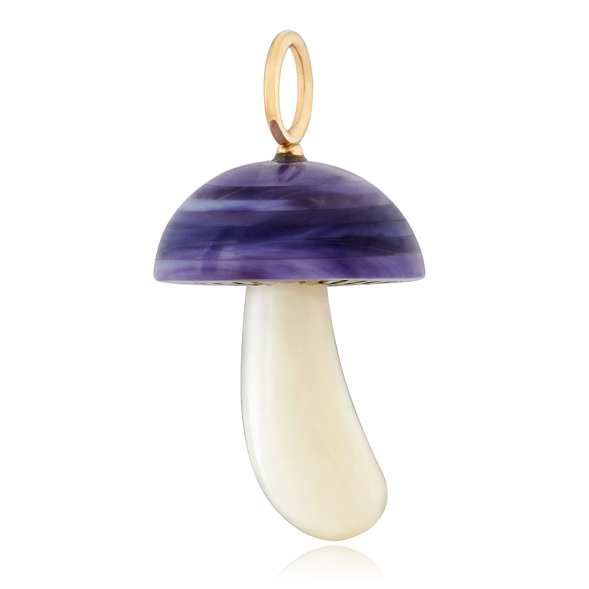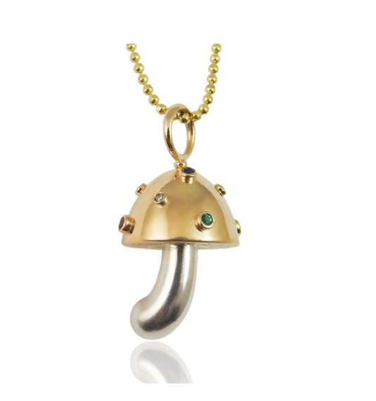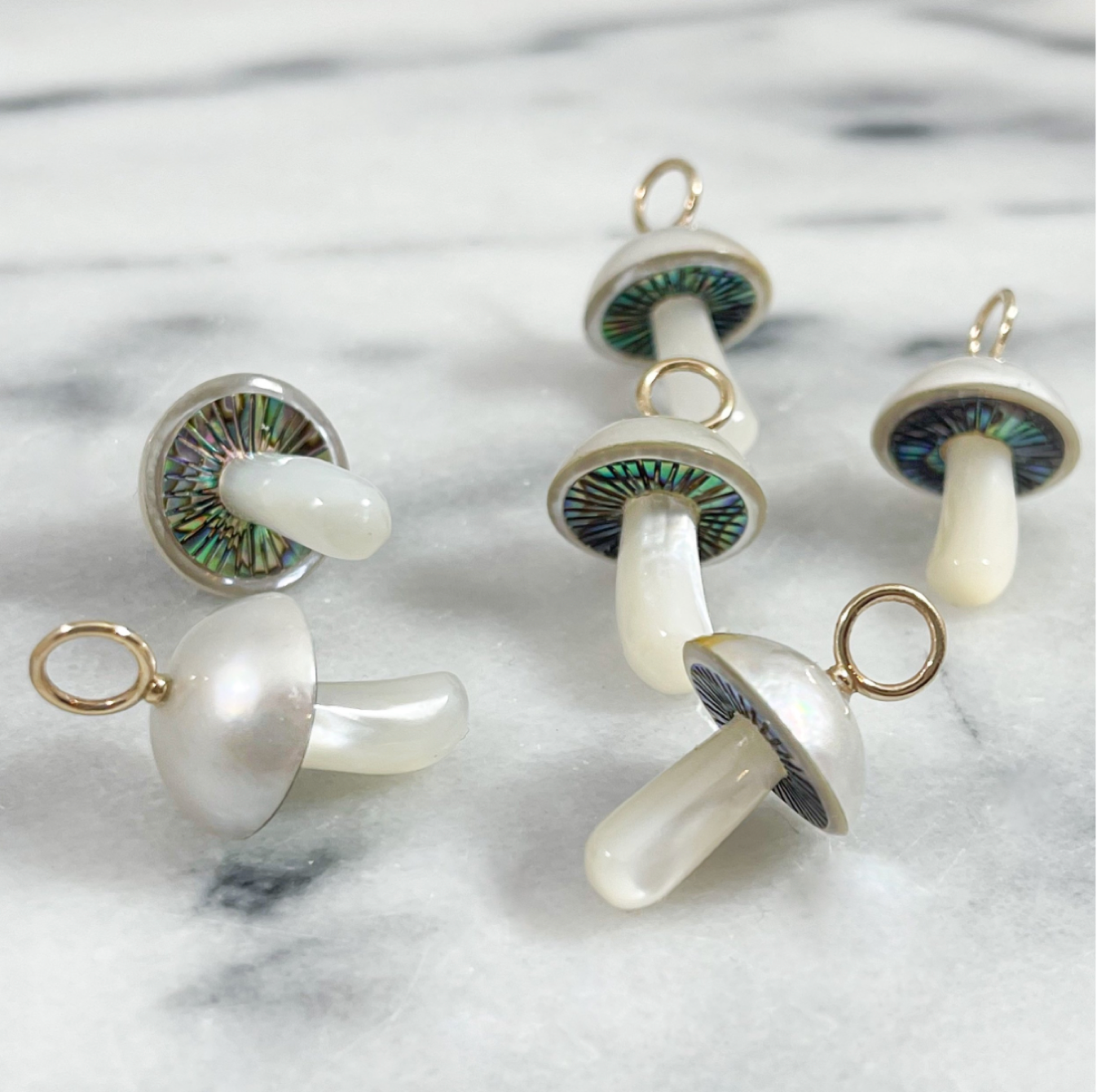 Silently springing forth overnight from darkness and decay, mushrooms harbor a hidden intelligence and an array of restorative powers that have long baffled and intrigued scientists (and the rest of us). It’s no surprise, then, that since ancient times mushrooms have symbolized hope, healing, rebirth, and the interconnectedness of all living things. Join Maura in celebrating the mystery and whimsy of these forest floor denizens through the masterfully hand-carved shells and gemstones of her Magical Mushrooms Collection.