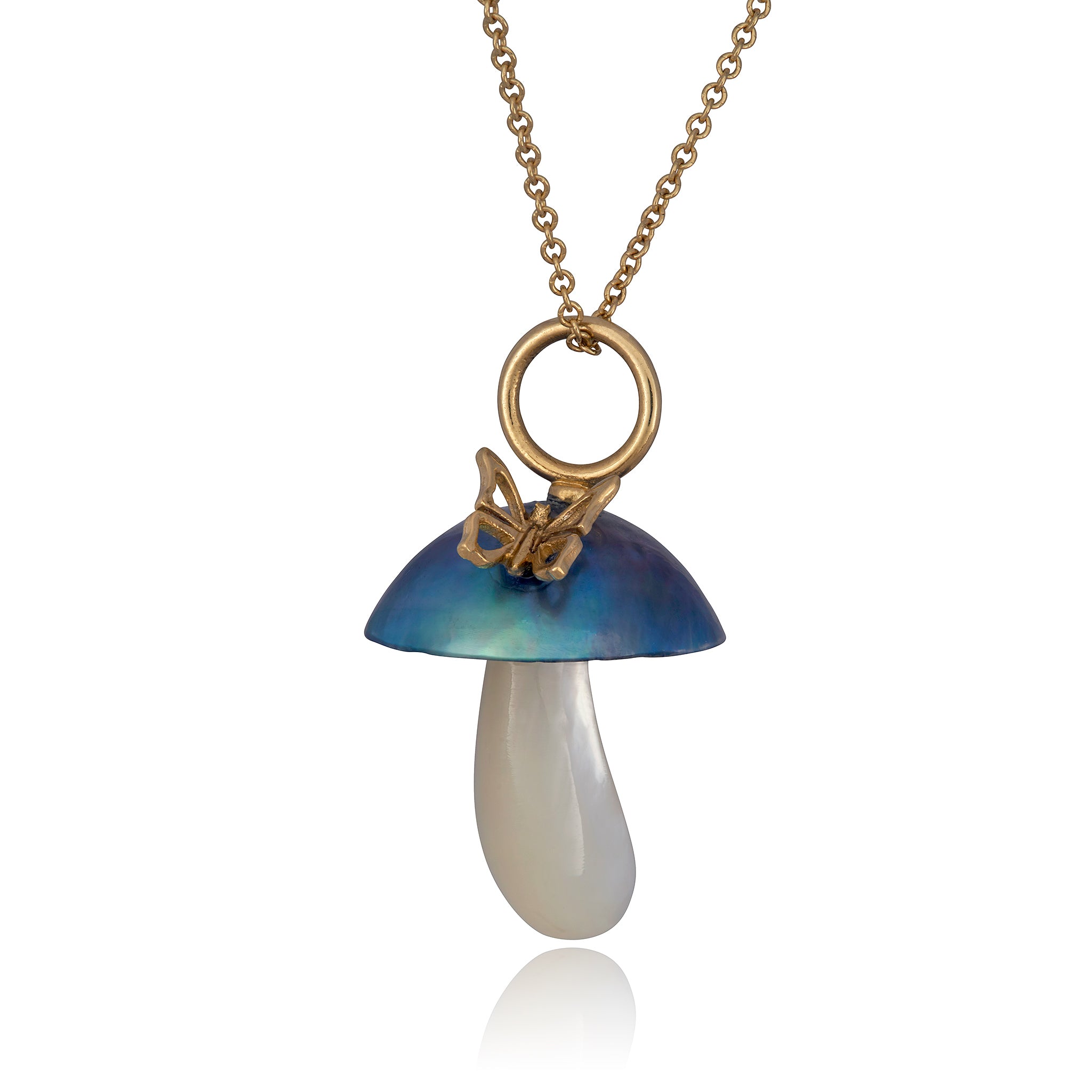 Blue Mabe Pearl Mushroom with Gold Butterfly