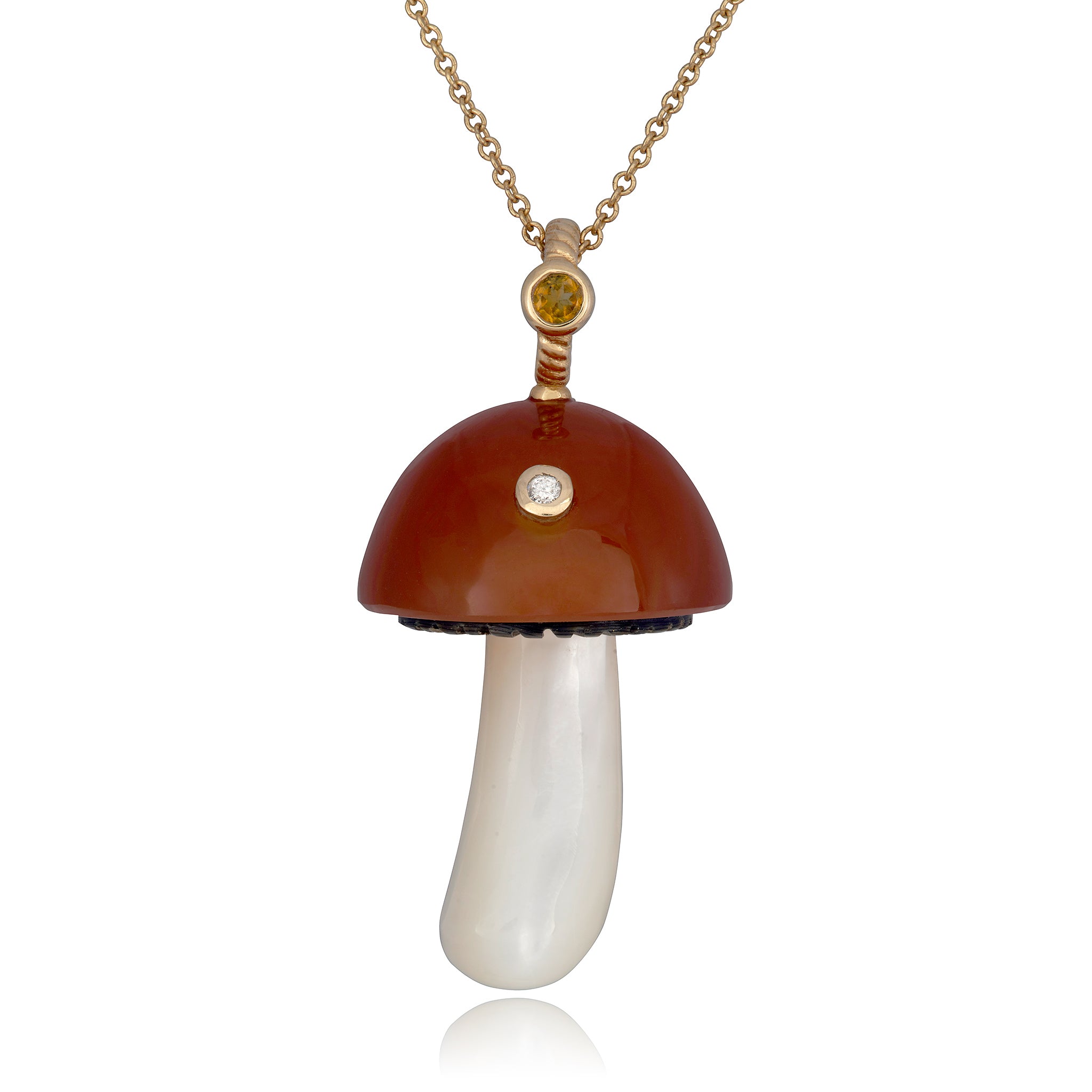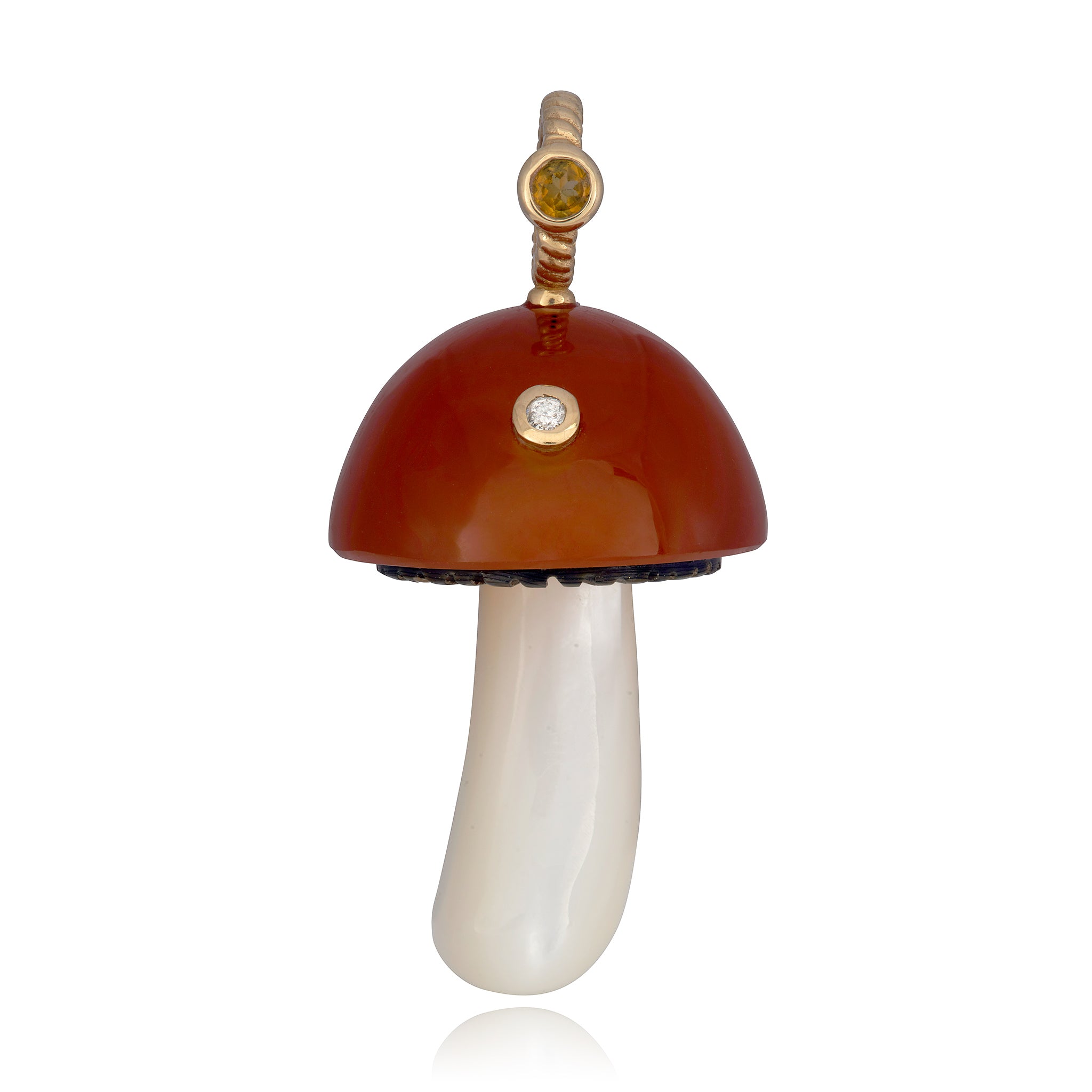 Orange Chalcedony Mushroom with Citrine and Diamond
