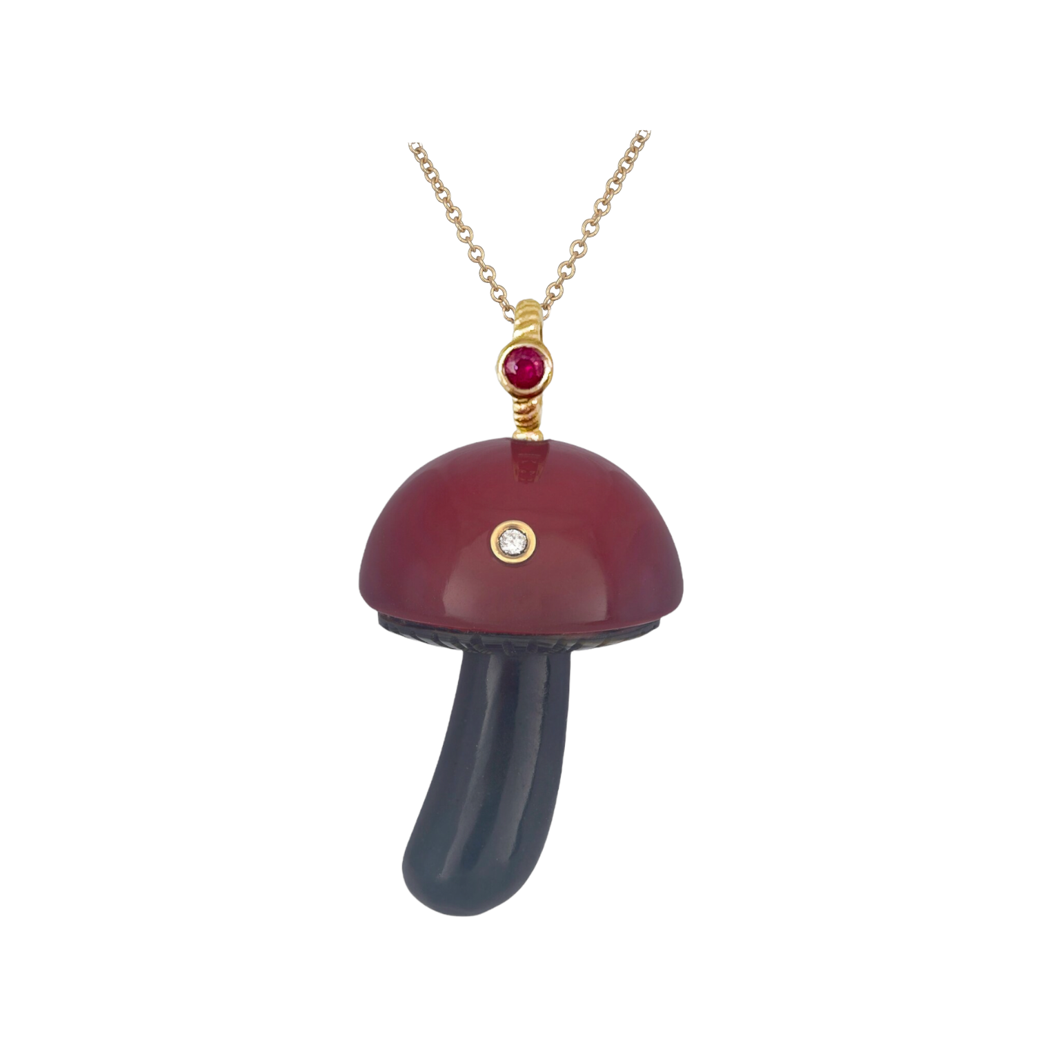 Red Chalcedony "Night Berry" Mushroom with Ruby, Black Jade and Diamond