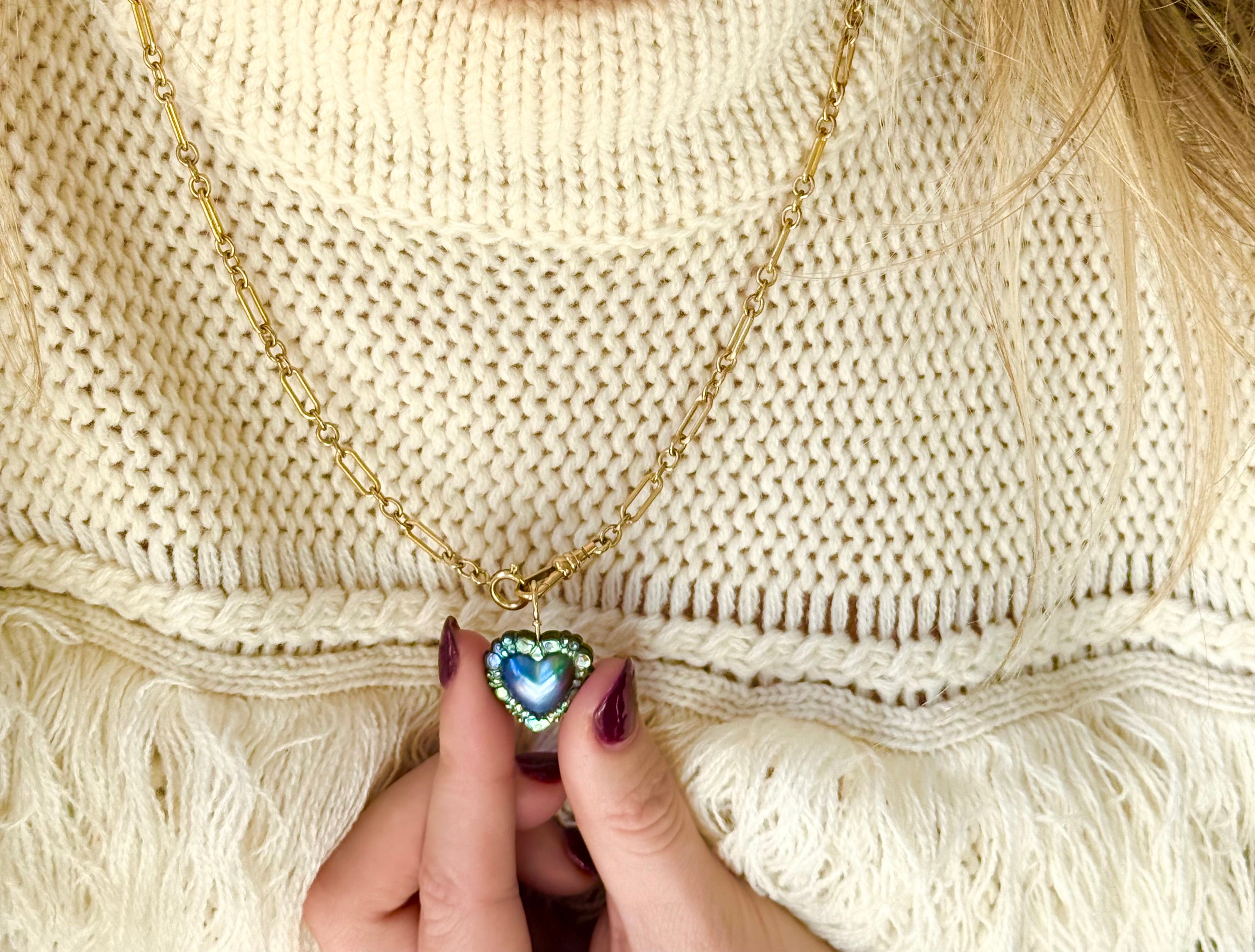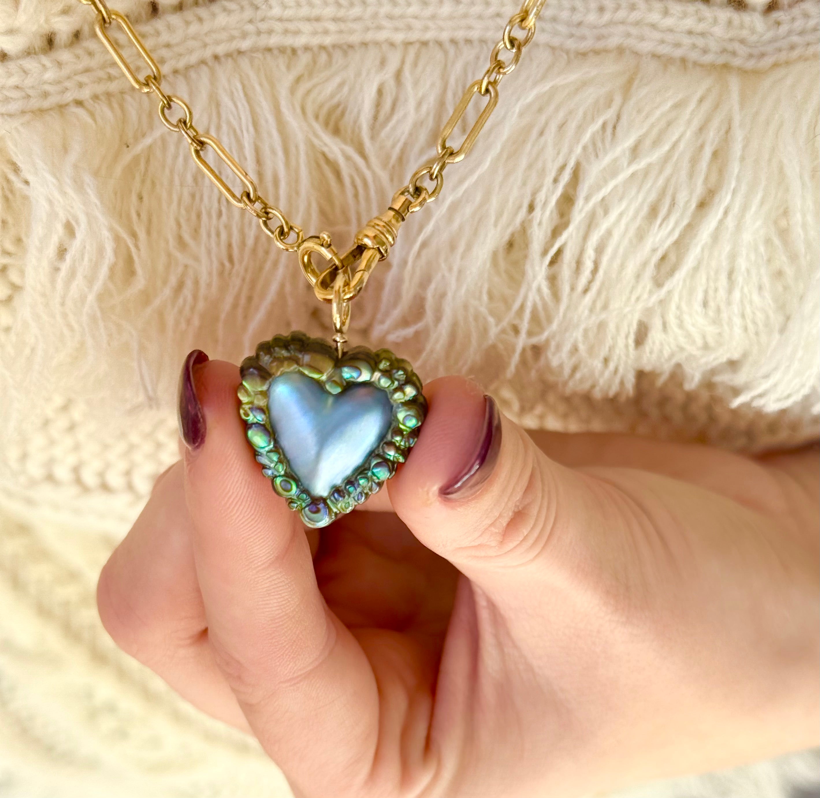 Sample Sale: Blue Mabe Pearl Heart and Abalone Bubble Trim