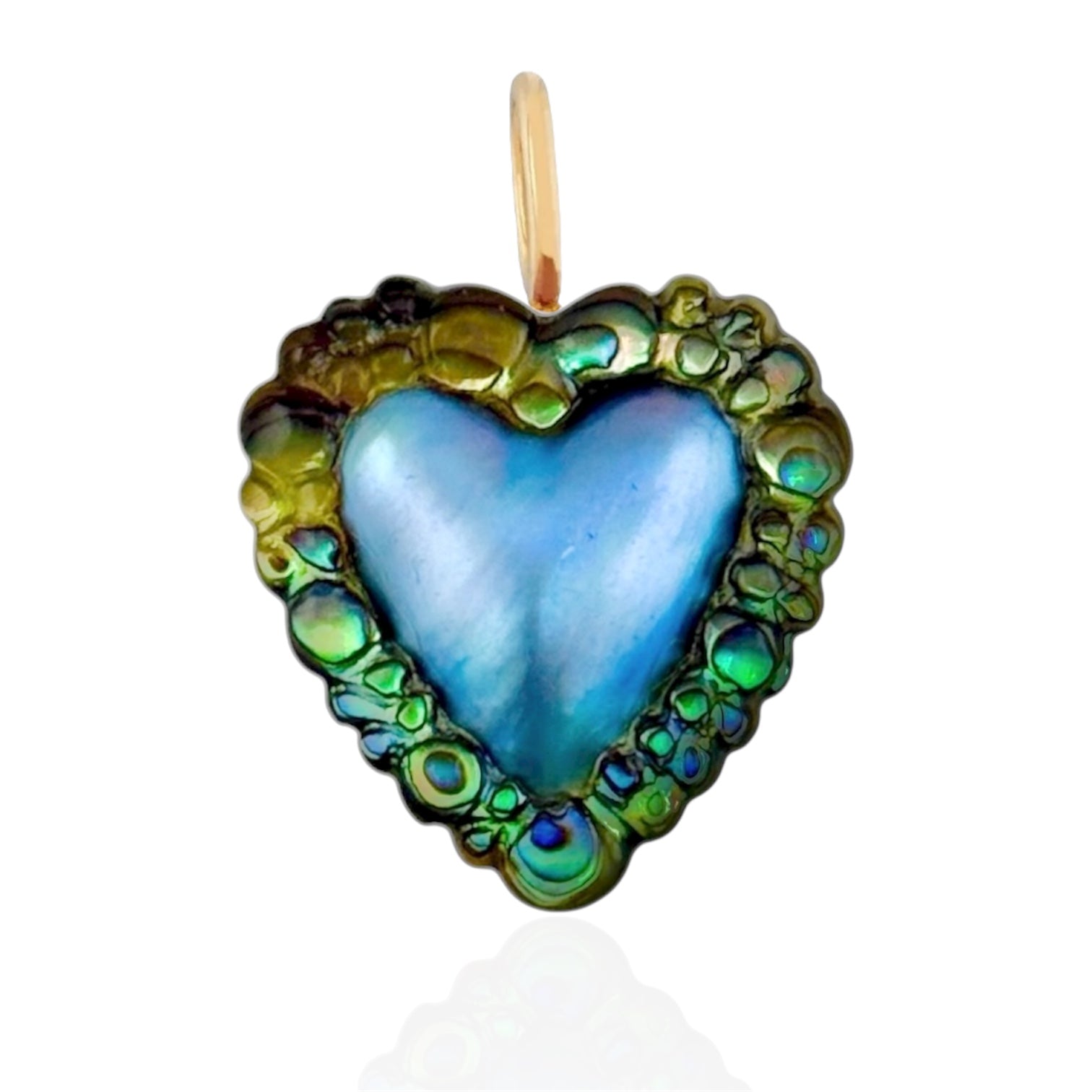 Sample Sale: Small Blue Mabe Pearl Heart and Abalone Bubble Trim