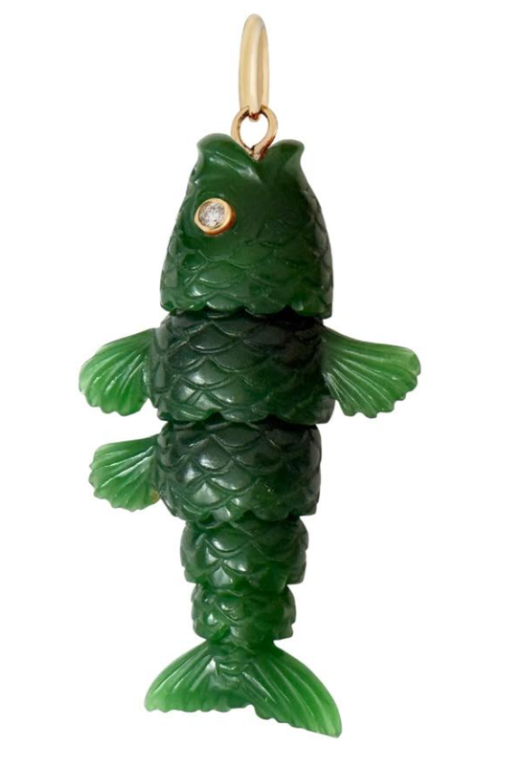 Articulated Fish in Forest Green Calceodony