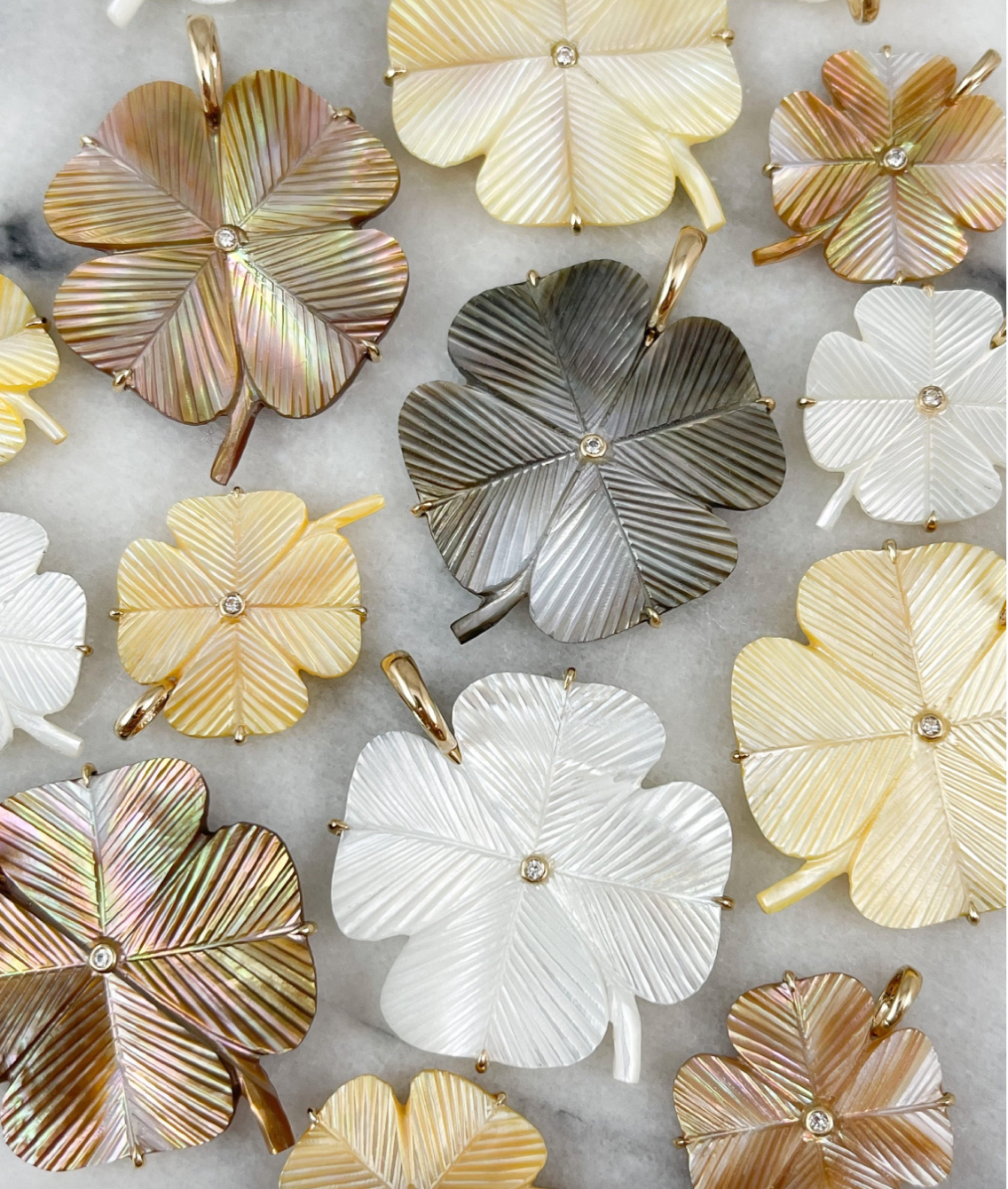 White Mother of Pearl with Diamond Mano Figa