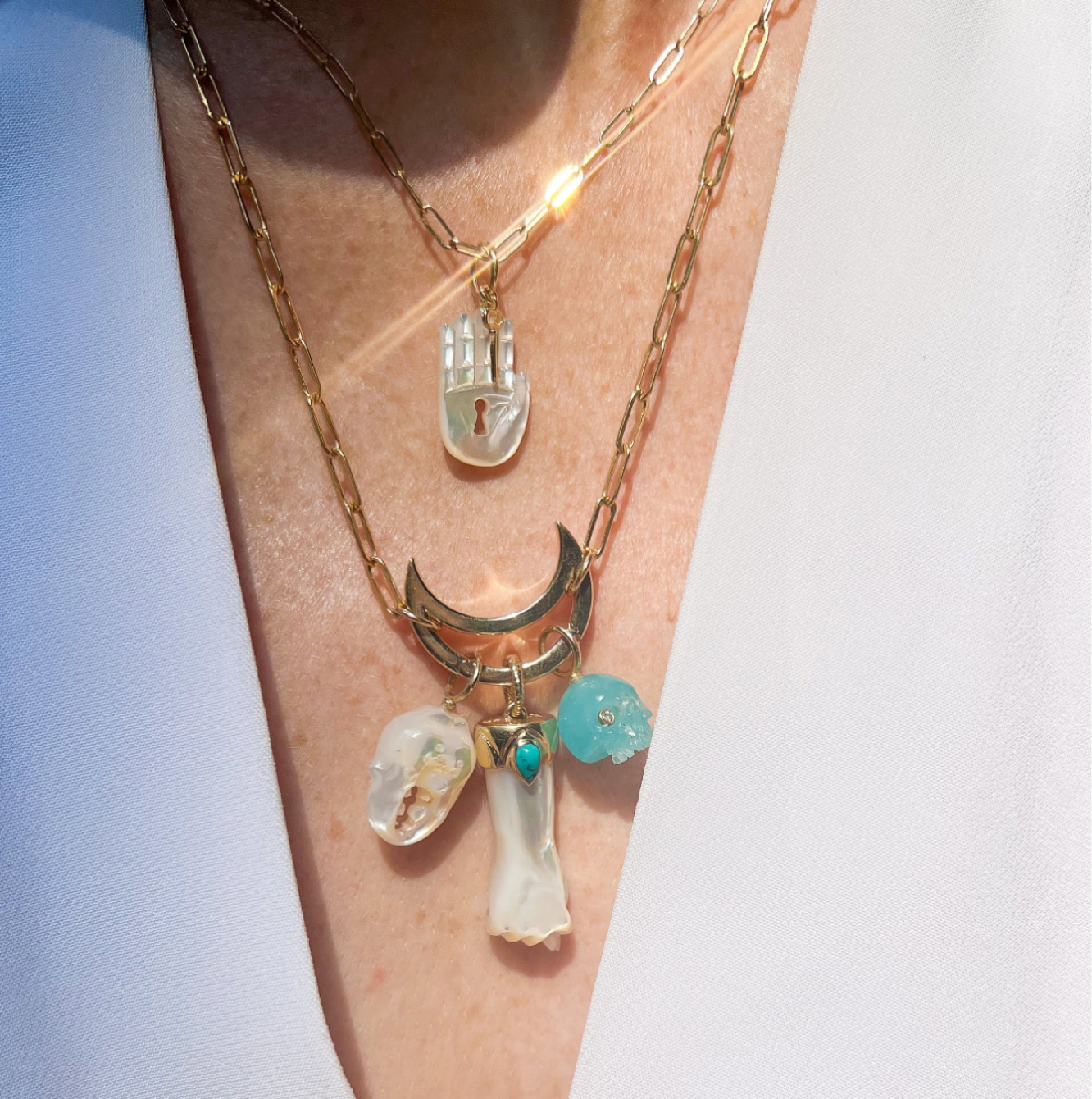 White Mother of Pearl and Turquoise Mano Figa