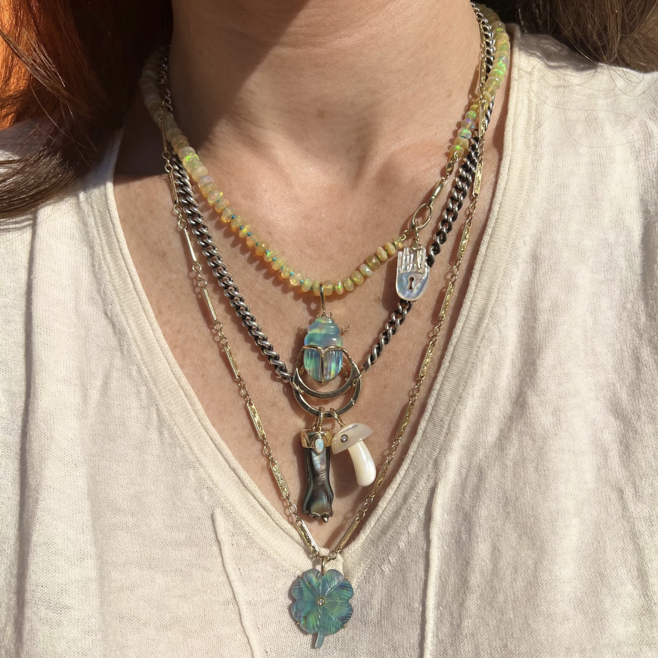 From the time human lips formed the first question, we have been curious, restless sojourners, looking outward to the marvels of Nature and inward to the human psyche for divine insight. Maura’s Totems Collection draws upon a selection of spiritual symbols and charms steeped in the wisdom of countless generations of human experience. Carried or worn as a memento or as a talisman for protection and growth, each of these meticulously hand-crafted, one-of-a-kind works of art is designed to provide inspiration and guidance for your own spiritual journey.